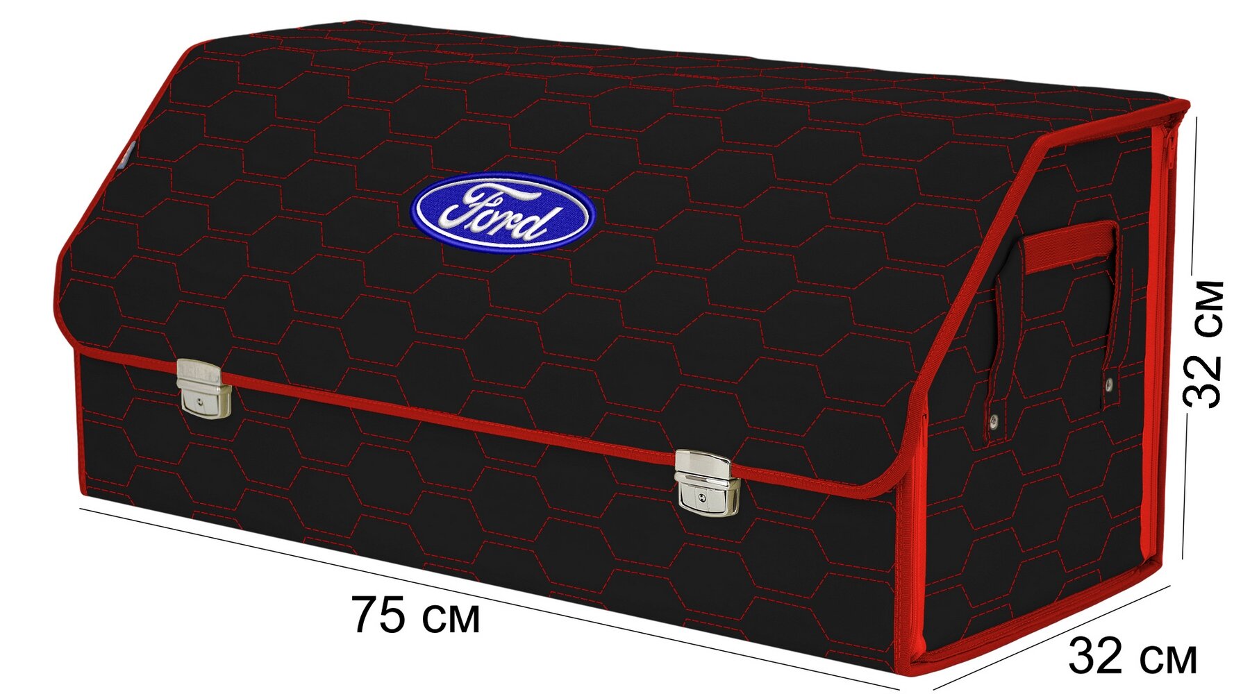Органайзер-саквояж в багажник "Союз Премиум" (размер XL Plus). Цвет: черный с красной прострочкой Соты и вышивкой Ford (Форд). 14 231 ₽