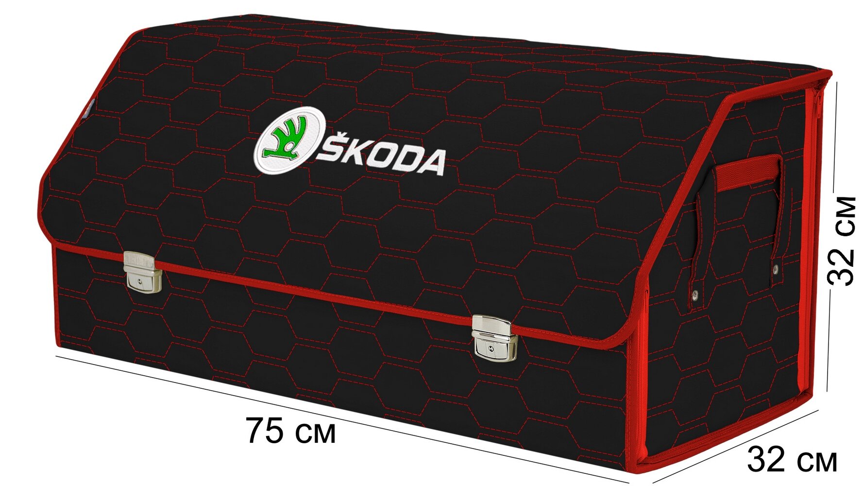 Органайзер-саквояж в багажник "Союз Премиум" (размер XL). Цвет: черный с красной прострочкой Ромб и вышивкой Skoda (Шкода).