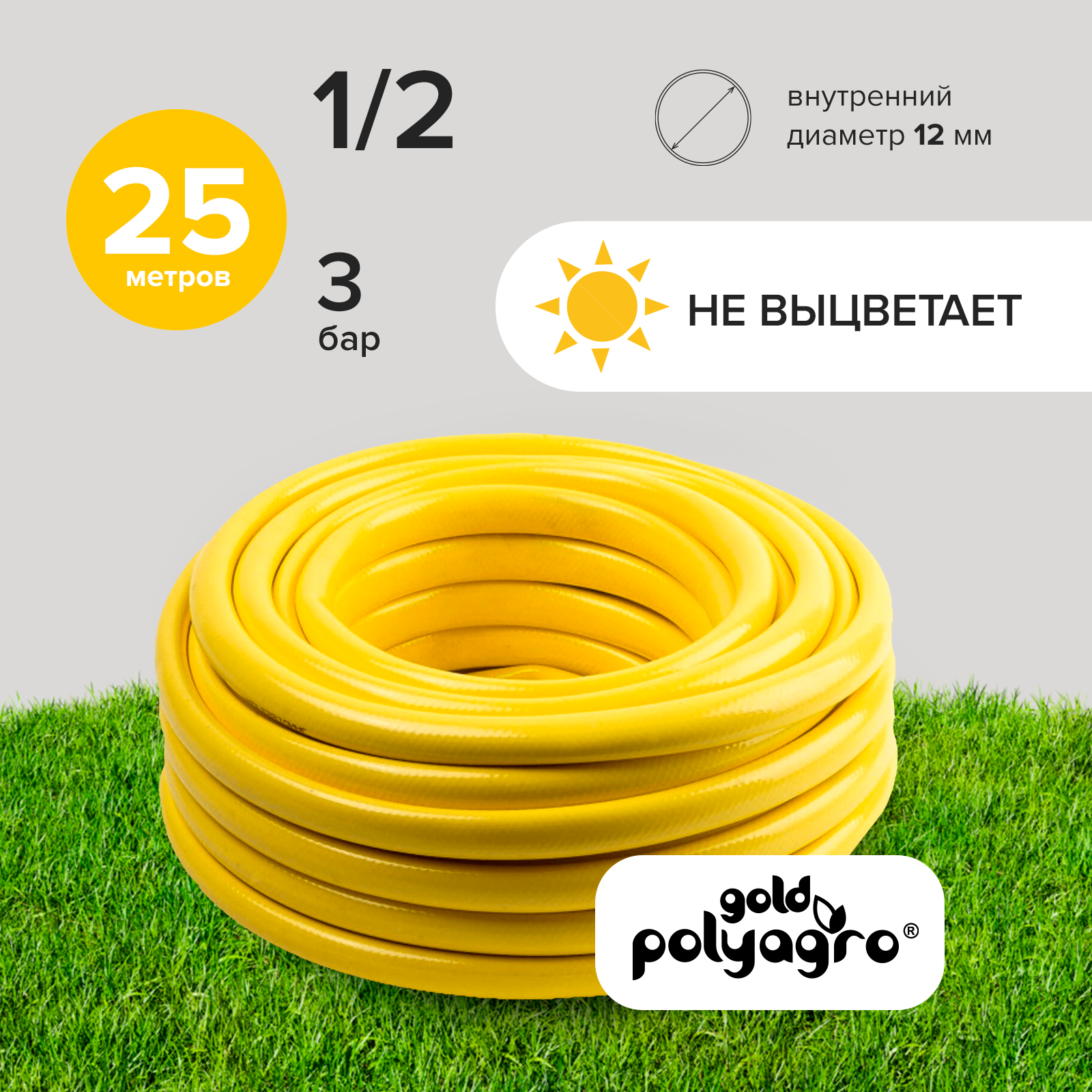 Шланг поливочный 1/2", 25м армированный для полива сада и огорода Polyagro информация: