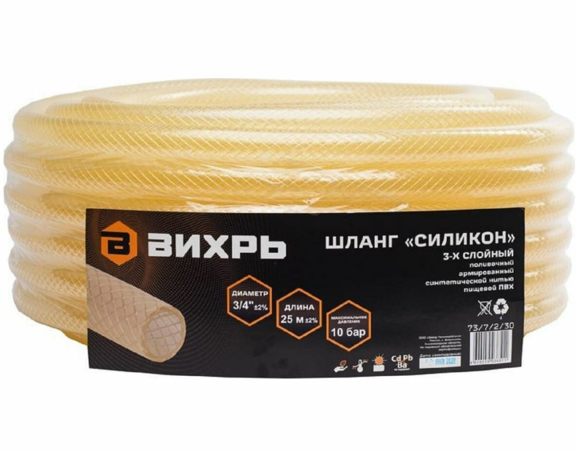10 цен на Поливочный шланг "Вихрь" 3/4, 25 метров, прозрачный, армированный, 3 слоя, силикон