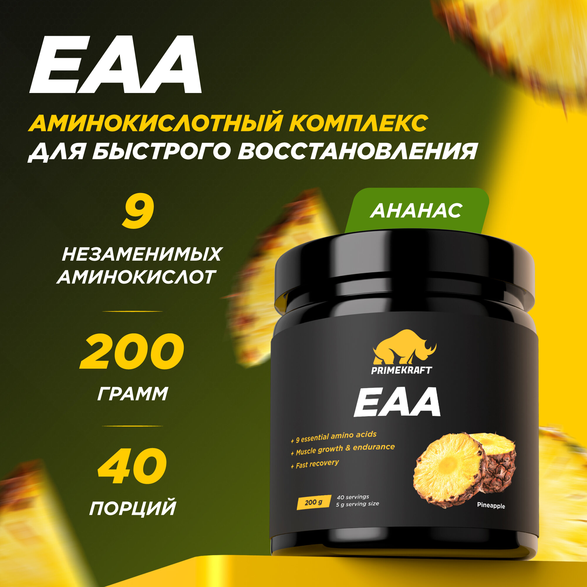Аминокислоты ЕАА PRIMEKRAFT, Ананас, 200 г / Комплекс аминокислот EAA 823 ₽