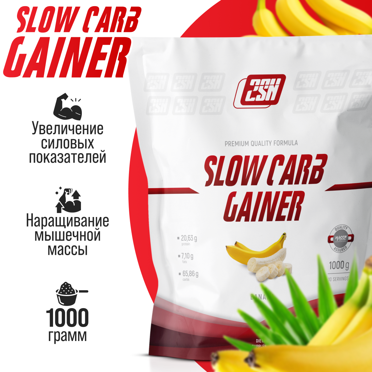 Гейнер для набора мышечной массы с медленными углеводами 2SN Slow Carb Gainer 1000г Банан информация: