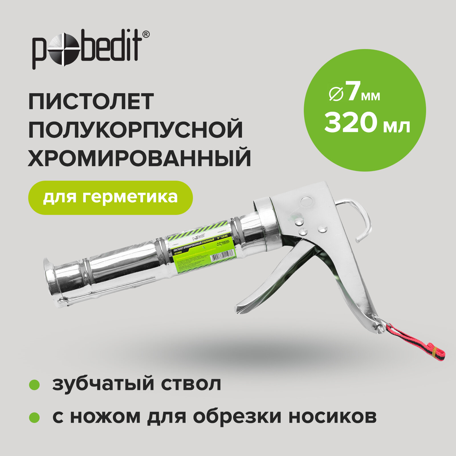 10 цен на Пистолет для герметика полукорпусной диаметром 7 мм, 320 мл, Pobedit