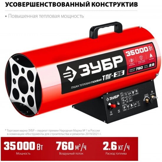 Газовая тепловая пушка Зубр ТПГ-35, серия «мастер» информация: