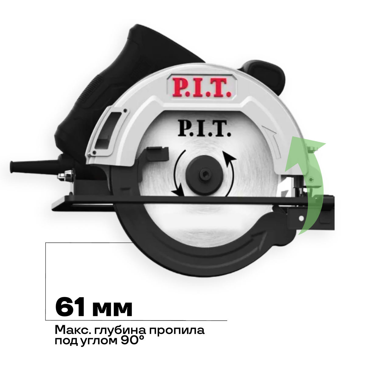 Пила циркулярная P.I.T. PKS185-C3 (1400Вт, 5500rpm, диск 185 мм, глубина пропила 60мм)