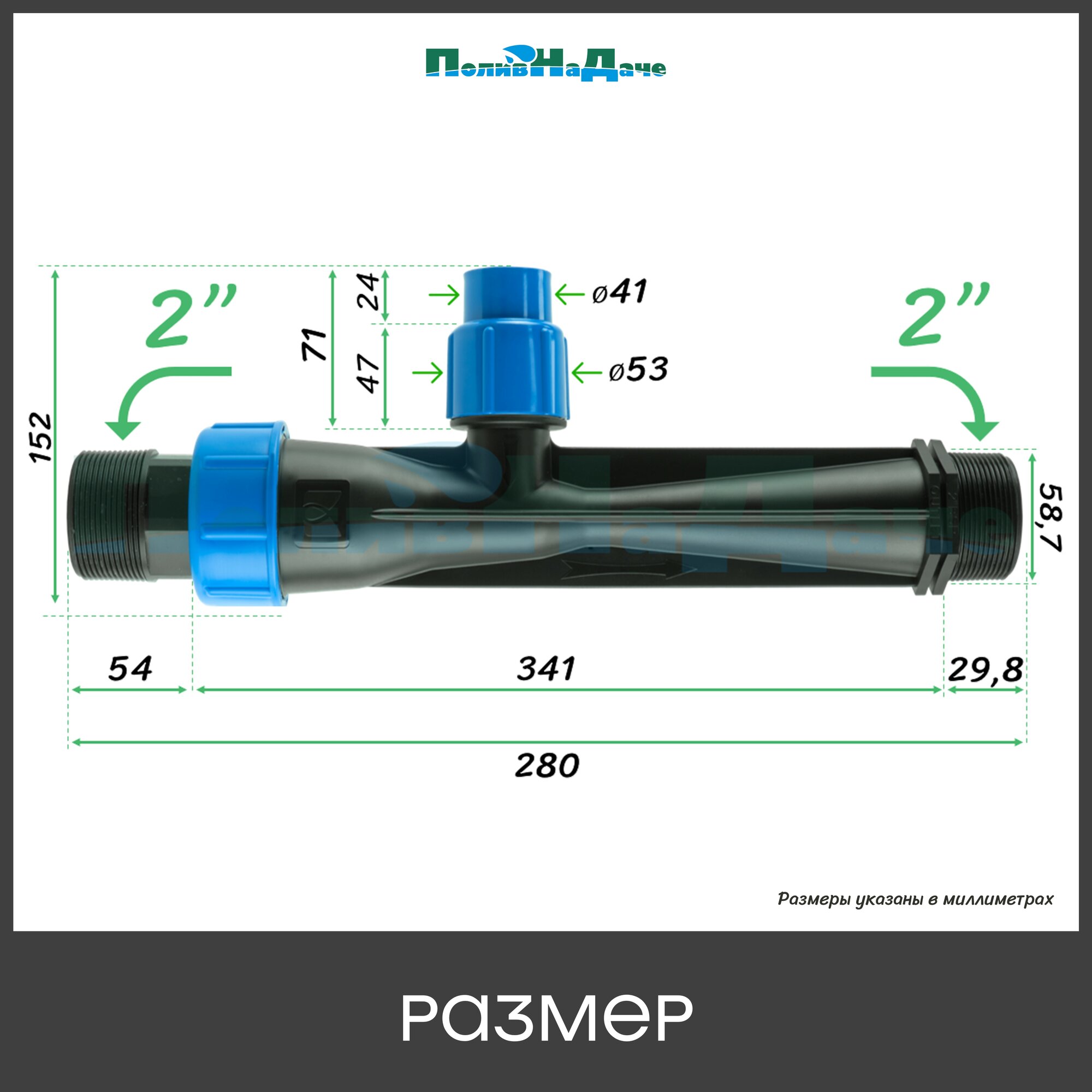 Инжектор Вентури для внесения удобрений 2" поток 11.58-20m3/h при 0.7-9.5bar, мощность всасывания 110-1200L/h 2 590 ₽