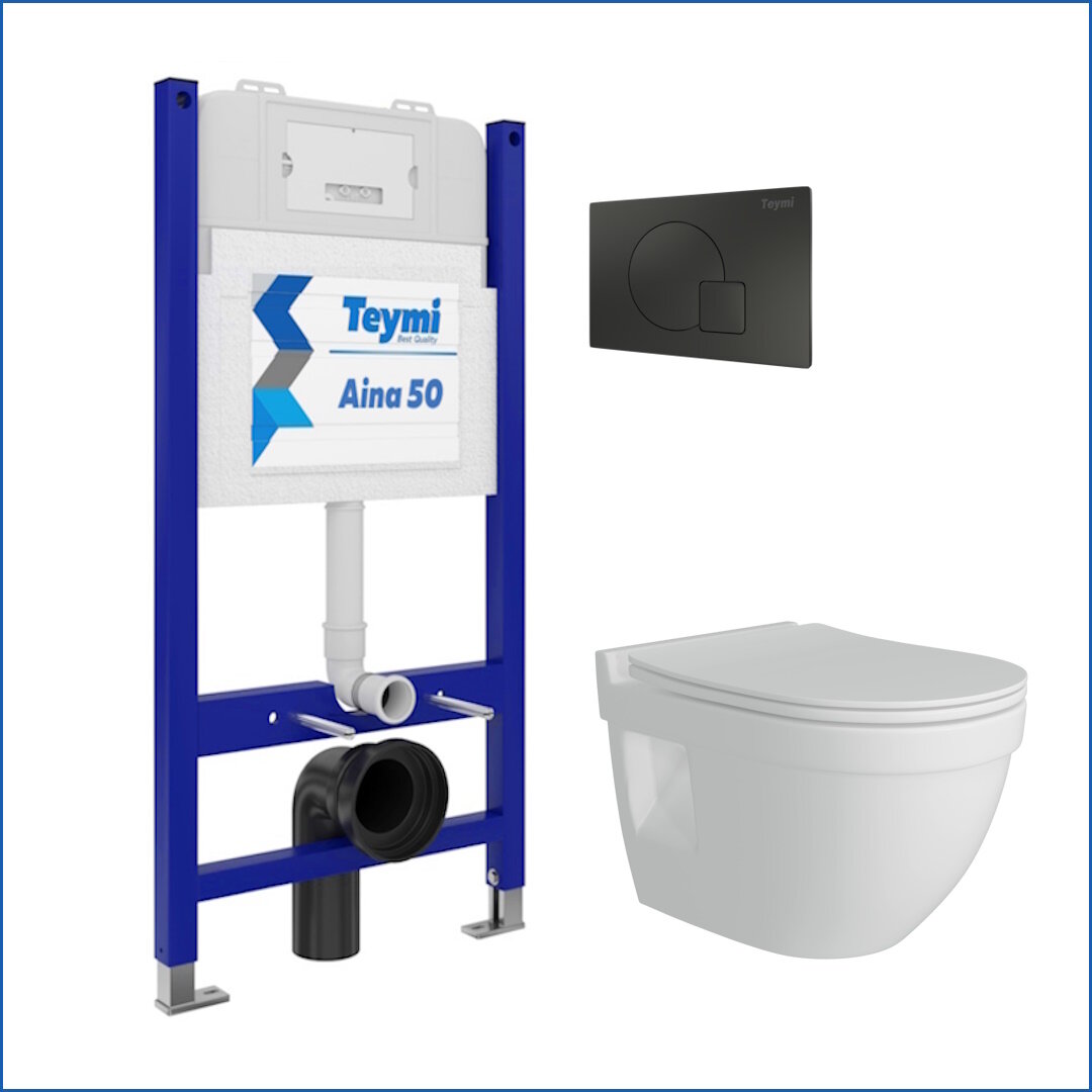 Комплект Teymi "Готовое решение": Инсталляция Aina 52 + клавиша смыва Ellie + унитаз Solli