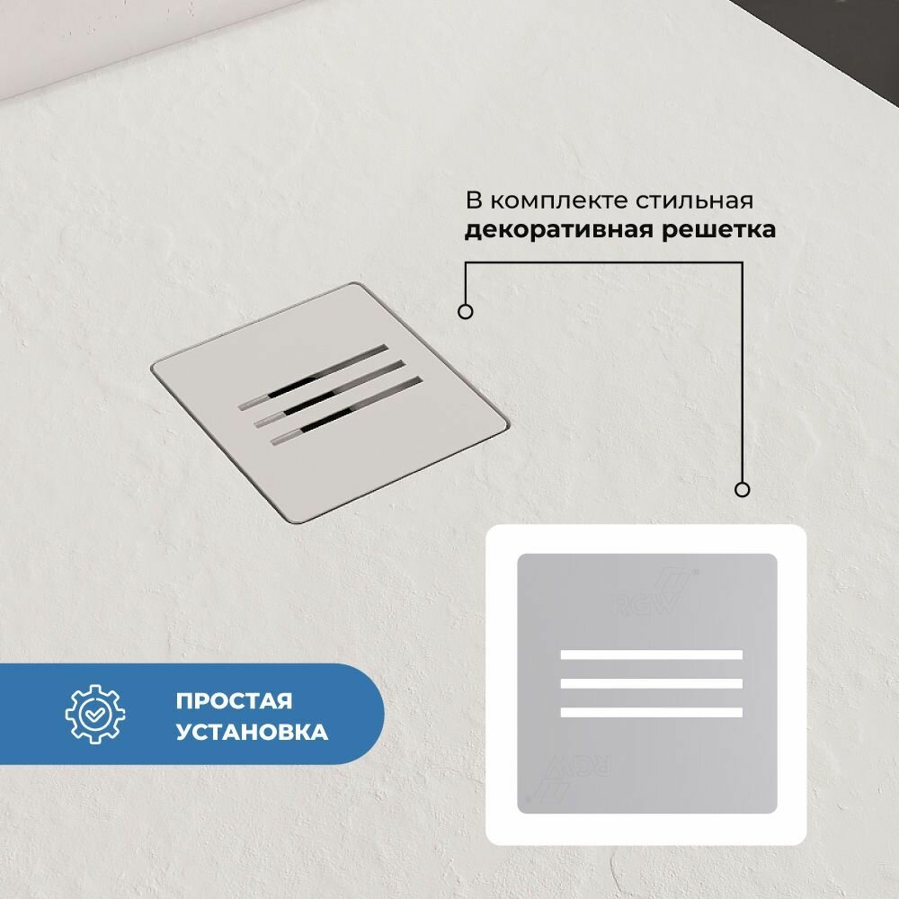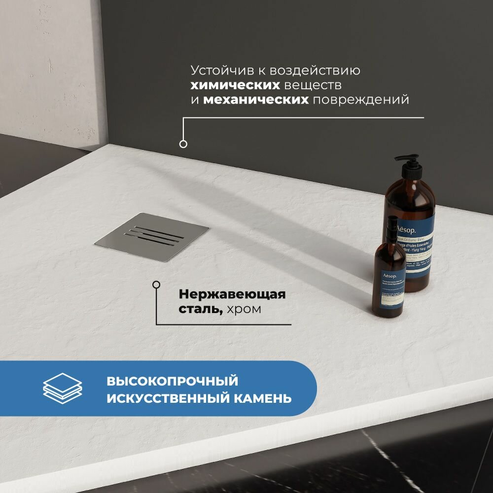 Премиальный поддон для душа INRAIN из искусственного камня квадратный 80х80х2,5см Белый с решеткой на сифон 20 017 ₽