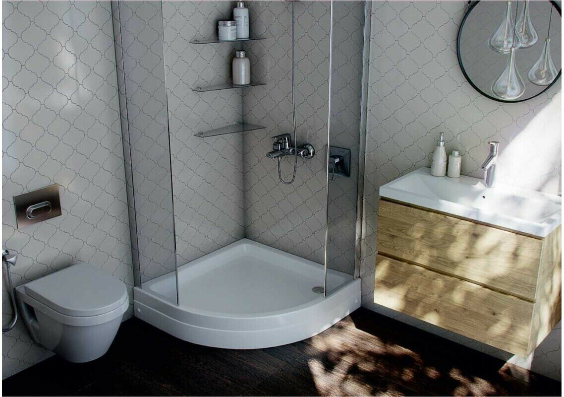 Поддон акриловый 90*90*15 1/4 R50 с ножками с фронтальным экраном, без сифона с уп.