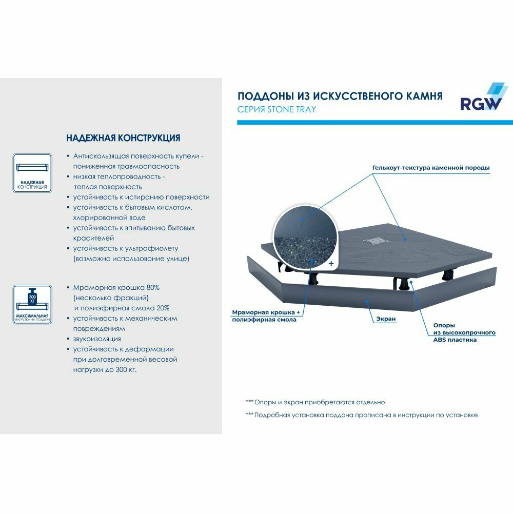 Отзывы на Душевой поддон RGW 80х80х2,5 см ST, Tх-0088G Графит, Трапеция Ø90 Каменный (16155088-02)
