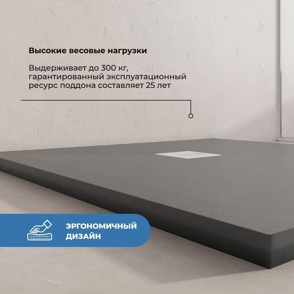 Премиальный поддон для душа INRAIN из искусственного камня трапеция Т-80х80x3см Графит с решеткой на сифон 17 454 ₽