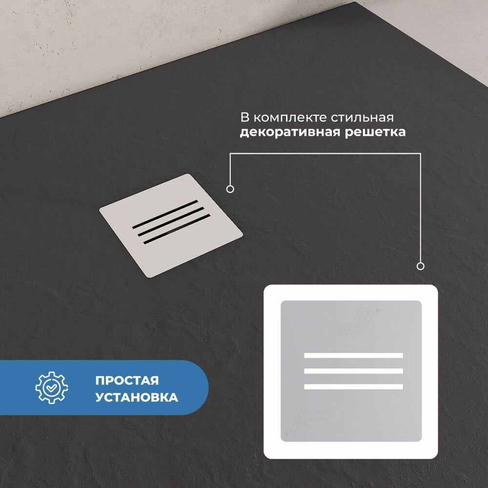 Премиальный поддон для душа INRAIN из искусственного камня трапеция Т-80х80x3см Графит с решеткой на сифон 17 454 ₽