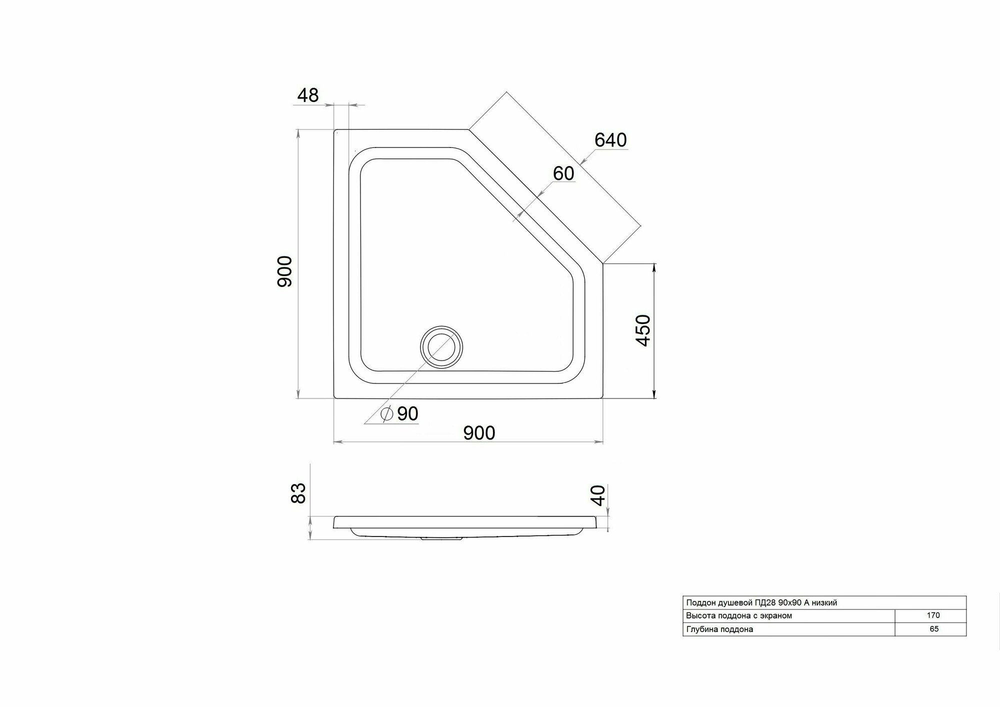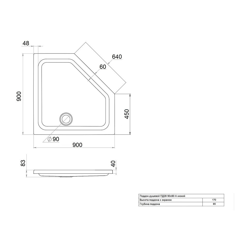Душевой поддон Тритон ПД28 низкий пятиугольный 900х900х170 мм белый (Щ0000052850) информация: