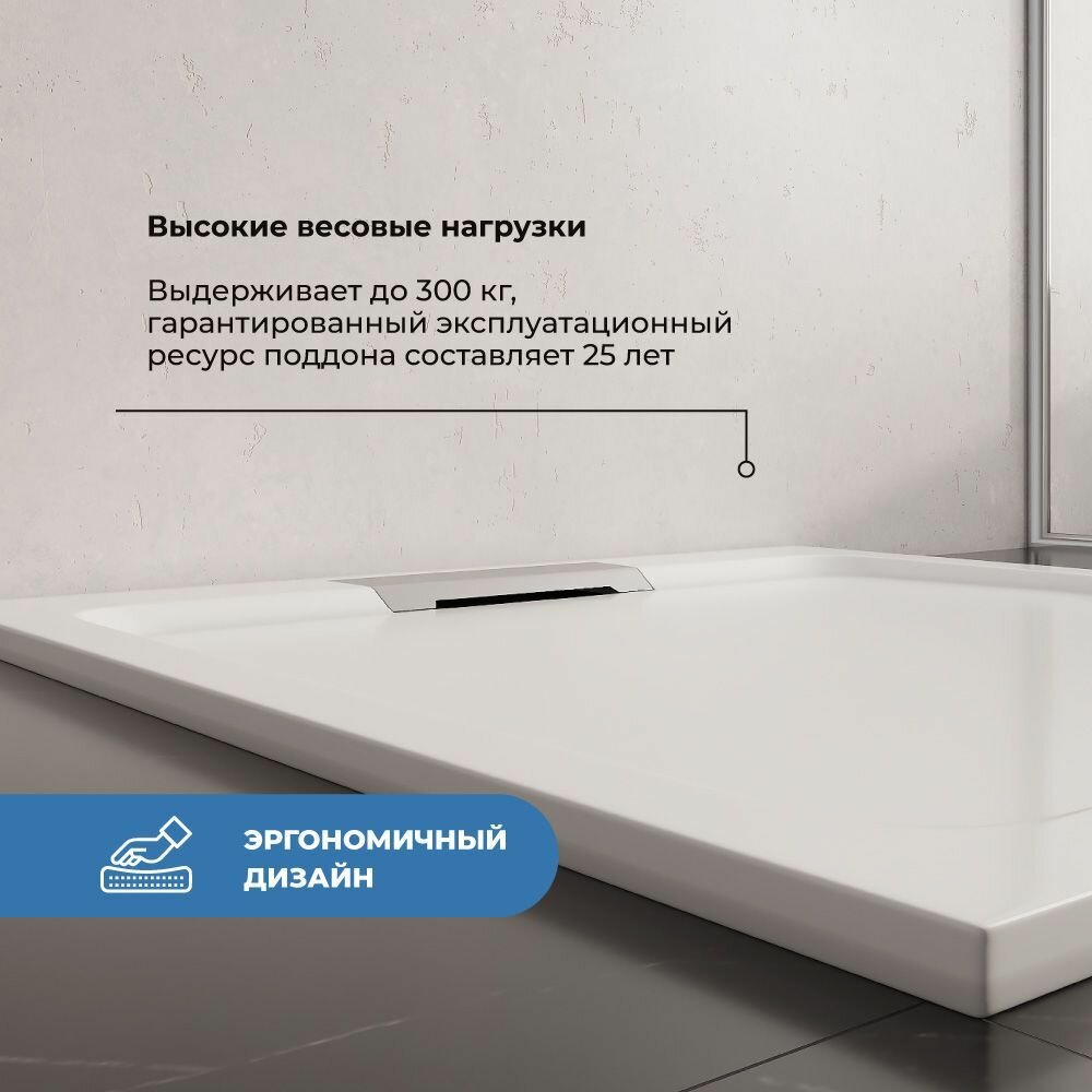 Премиальный поддон для душа INRAIN из искусственного камня квадратный A-01 90х90х3см Белый с накладкой на сифон 23 243 ₽