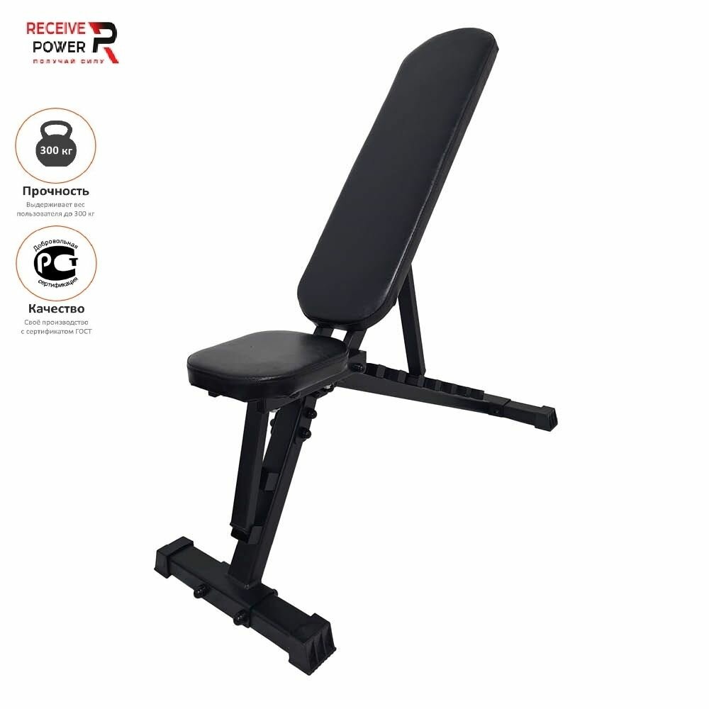 Отзывы на Скамья силовая Receive Power цельносварная для жима (свыше 350кг) черный каркас с черной обивкой
