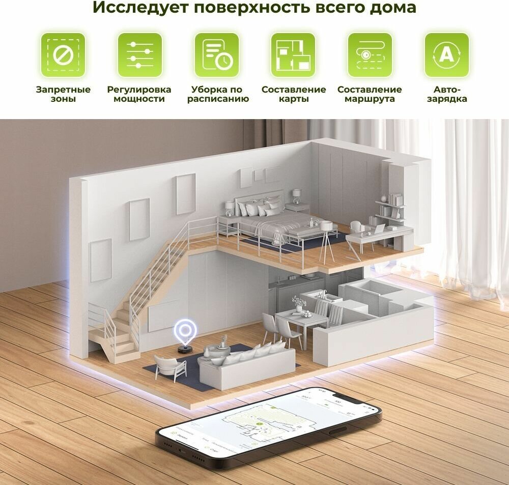 | Особенности конструкции | датчик перепада высоты / лидар / мусоросборник в базе / мягкий бампер |