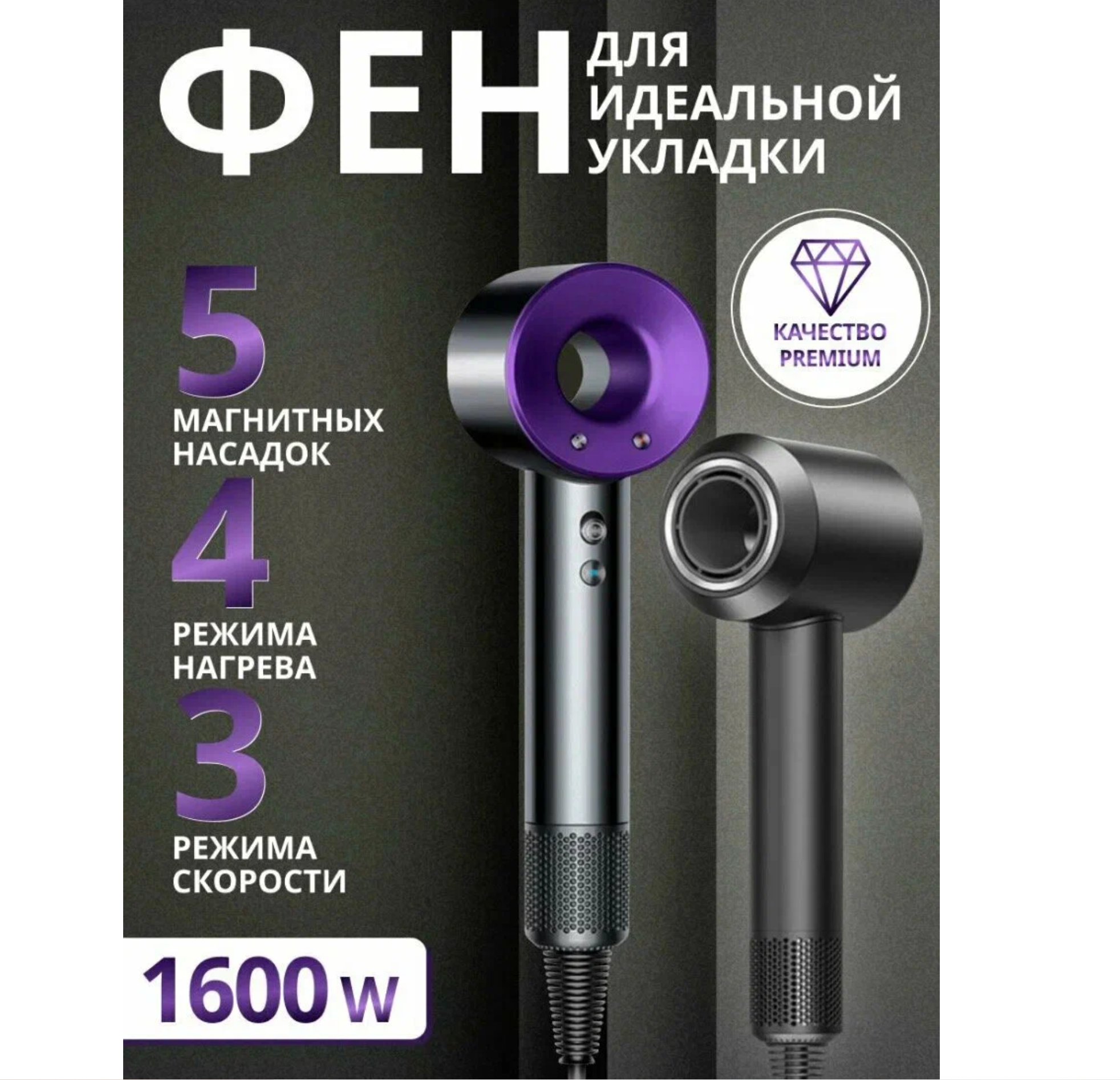 Фен для волос профессиональный/ Супер фен для укладки волос/ профессиональный для укладки волос с ионизацией , 5 насадок и шнуром 2,7м./Premium Edition 3 250 ₽