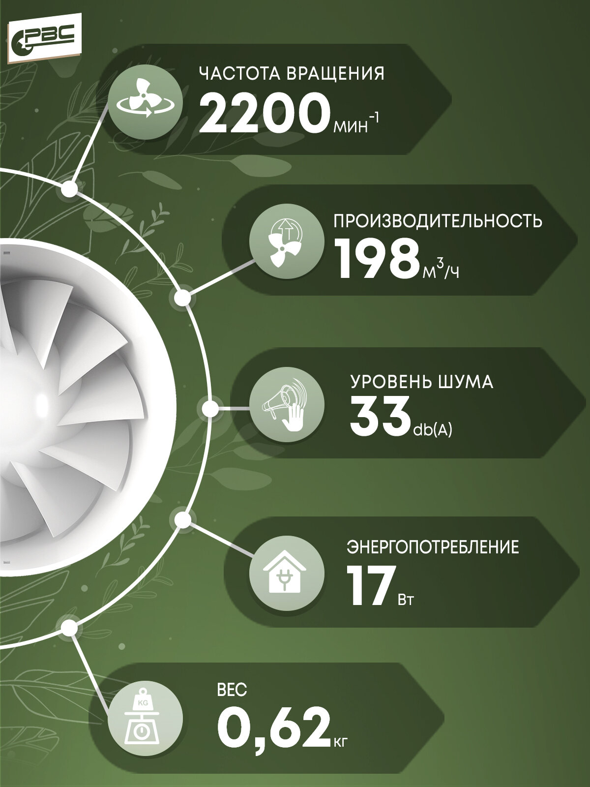 Вентилятор тихий канальный на шарикоподшипниках энергоэффективный РВС Орбита 125 информация: