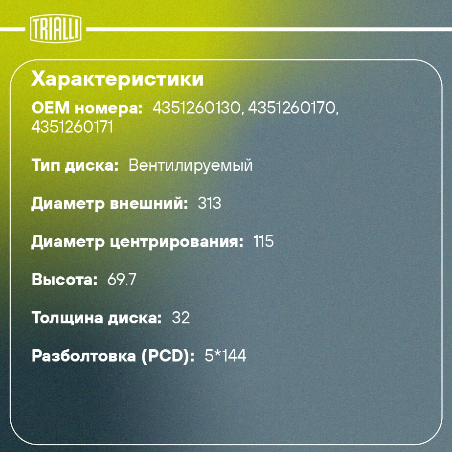 Отзывы на Диск тормозной для автомобилей Toyota Land Cruiser 100 (98-) передний d=313 DF 190601 TRIALLI