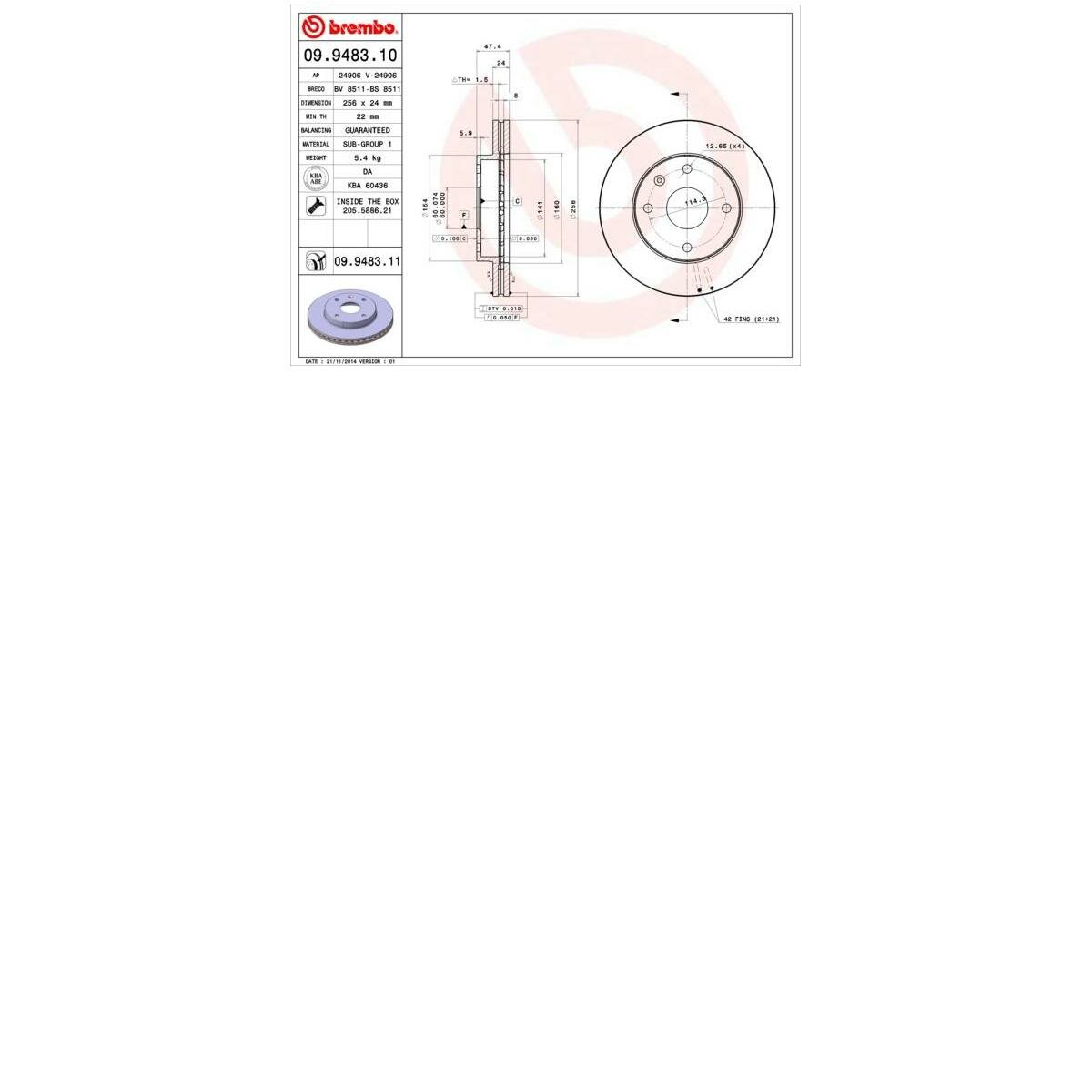 Тормозной диск 1 шт 09.9483.11, Передняя ось информация: