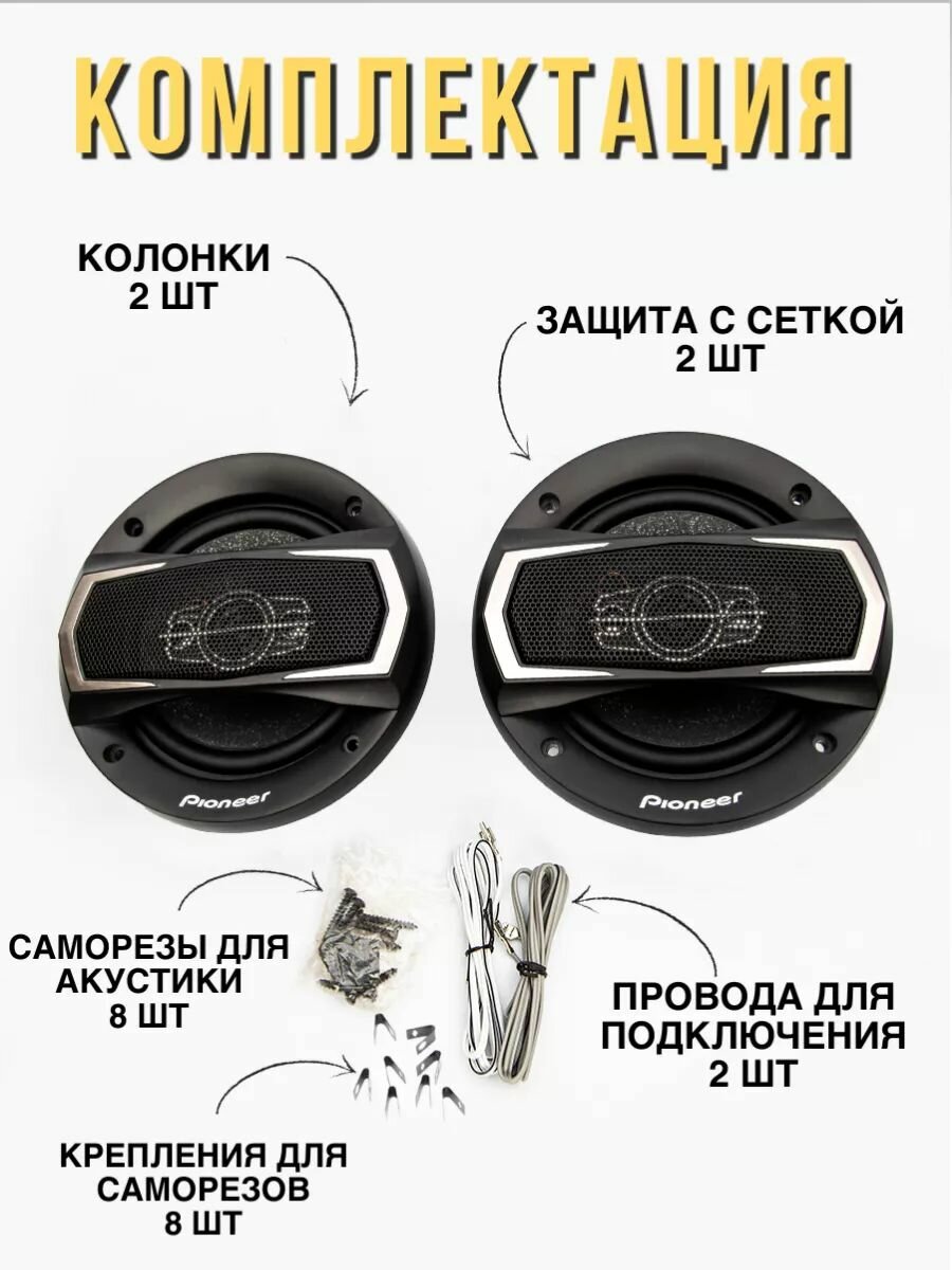 Автомобильные динамики "Pioneer TS-A1395S" / Комплект из 2 штук / Коаксиальная акустика 3-х полосная, 13 См (5 Дюйм.), 300 Вт. информация: