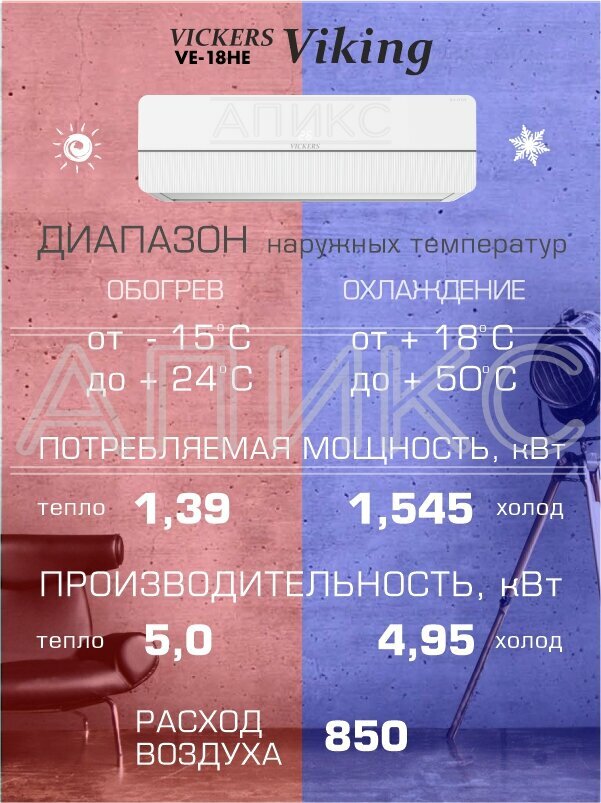 Сплит-система VICKERS VIKING VE-18HE Inverter бытовой кондиционер до 54 м2, класс А, 18 BTU информация: