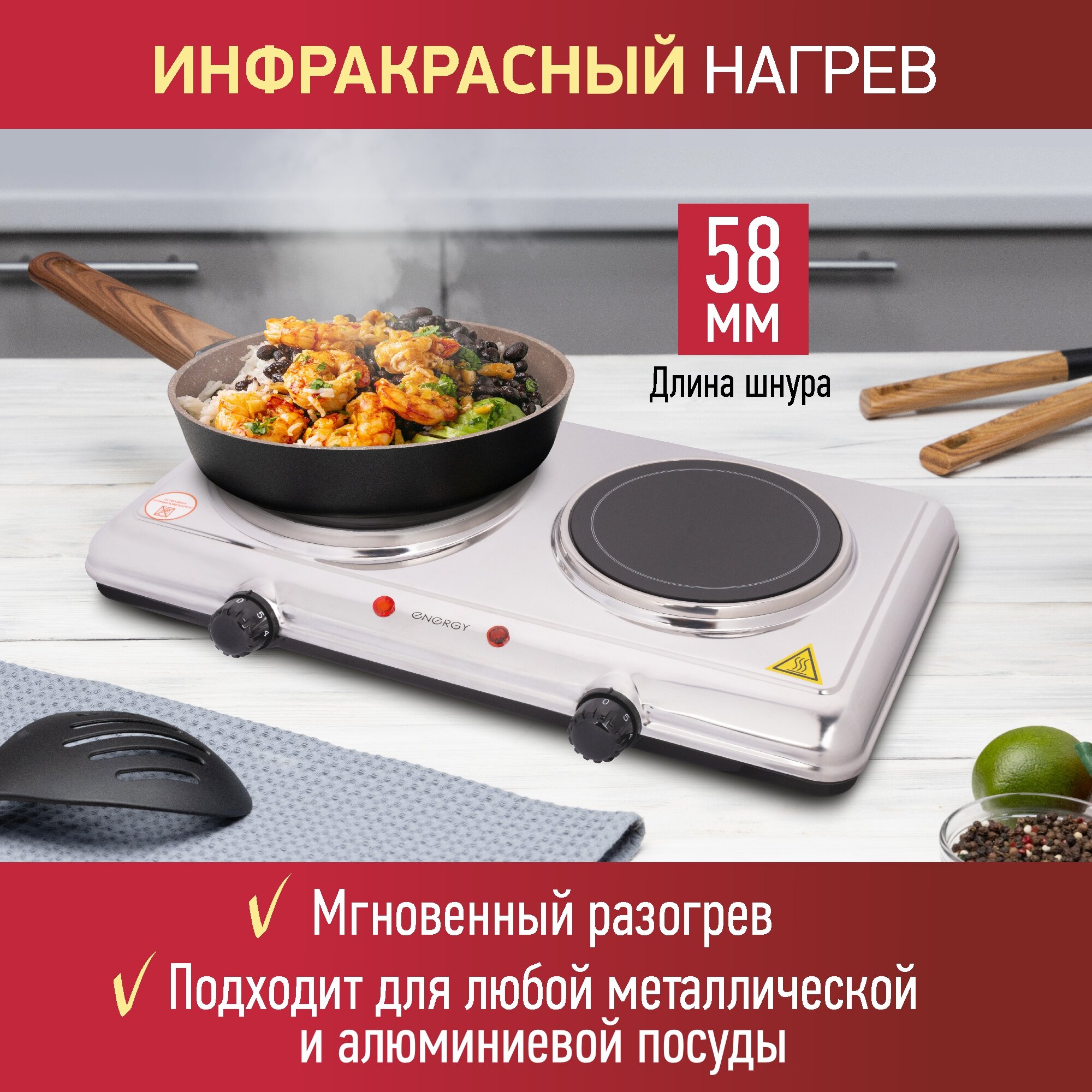 Плита электрическая настольная инфракрасная Energy EN-911, 2 конфорки информация: