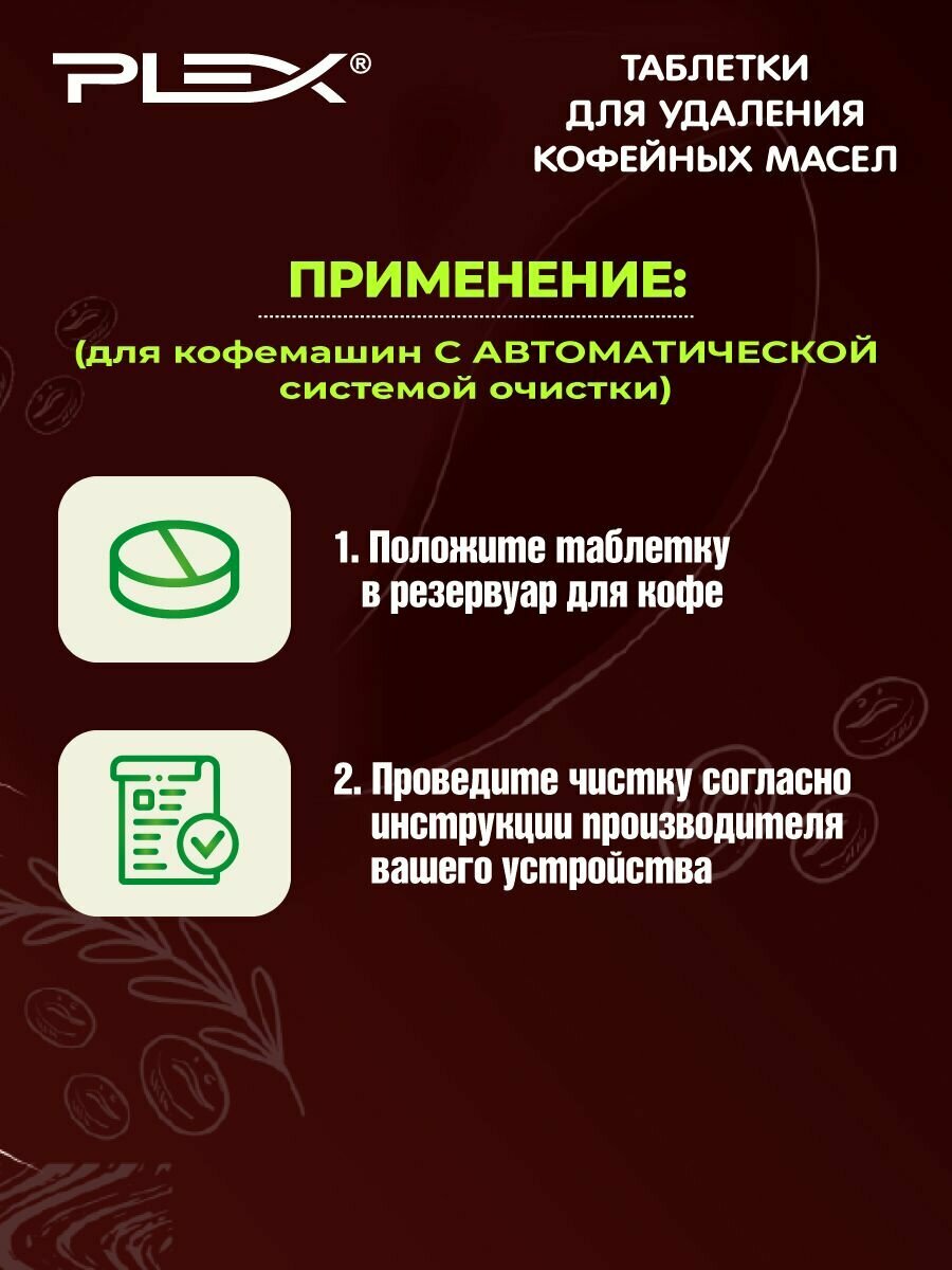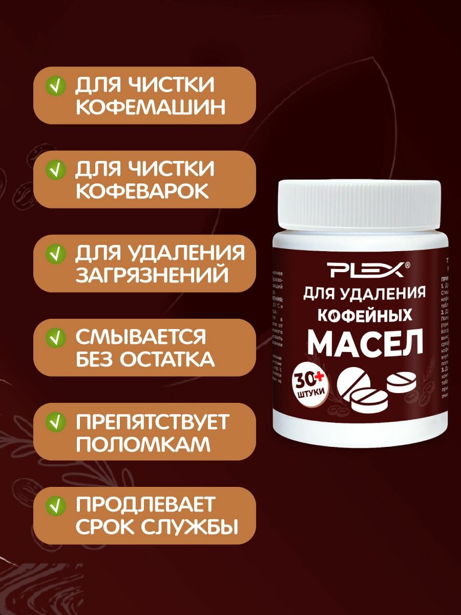 Таблетки для очистки кофемашин от кофейных масел PLEX 30шт информация: