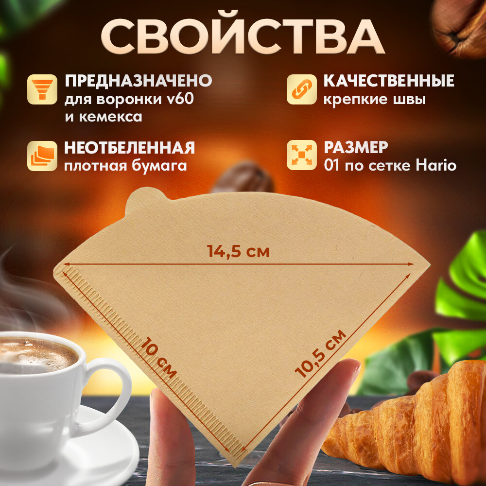 10 цен на Фильтры бумажные Coffee&Press №01 для воронки v60 неотбеленные, 1-2 чашки, 100 шт