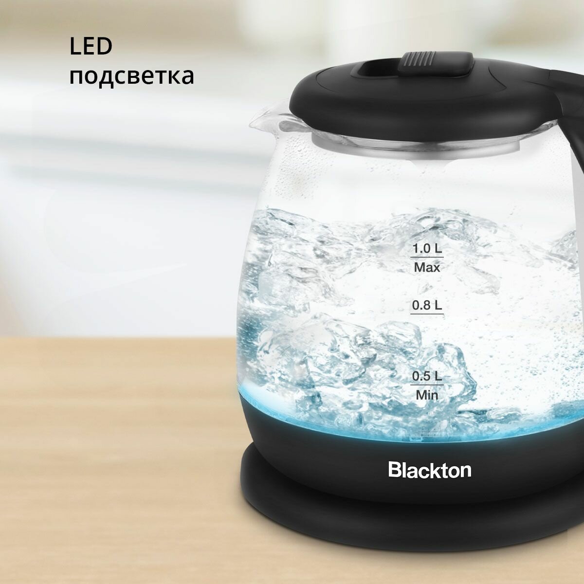 Компактный Чайник Blackton Bt KT1802G Черный / Стеклянный / 1 л 1500 Вт информация: