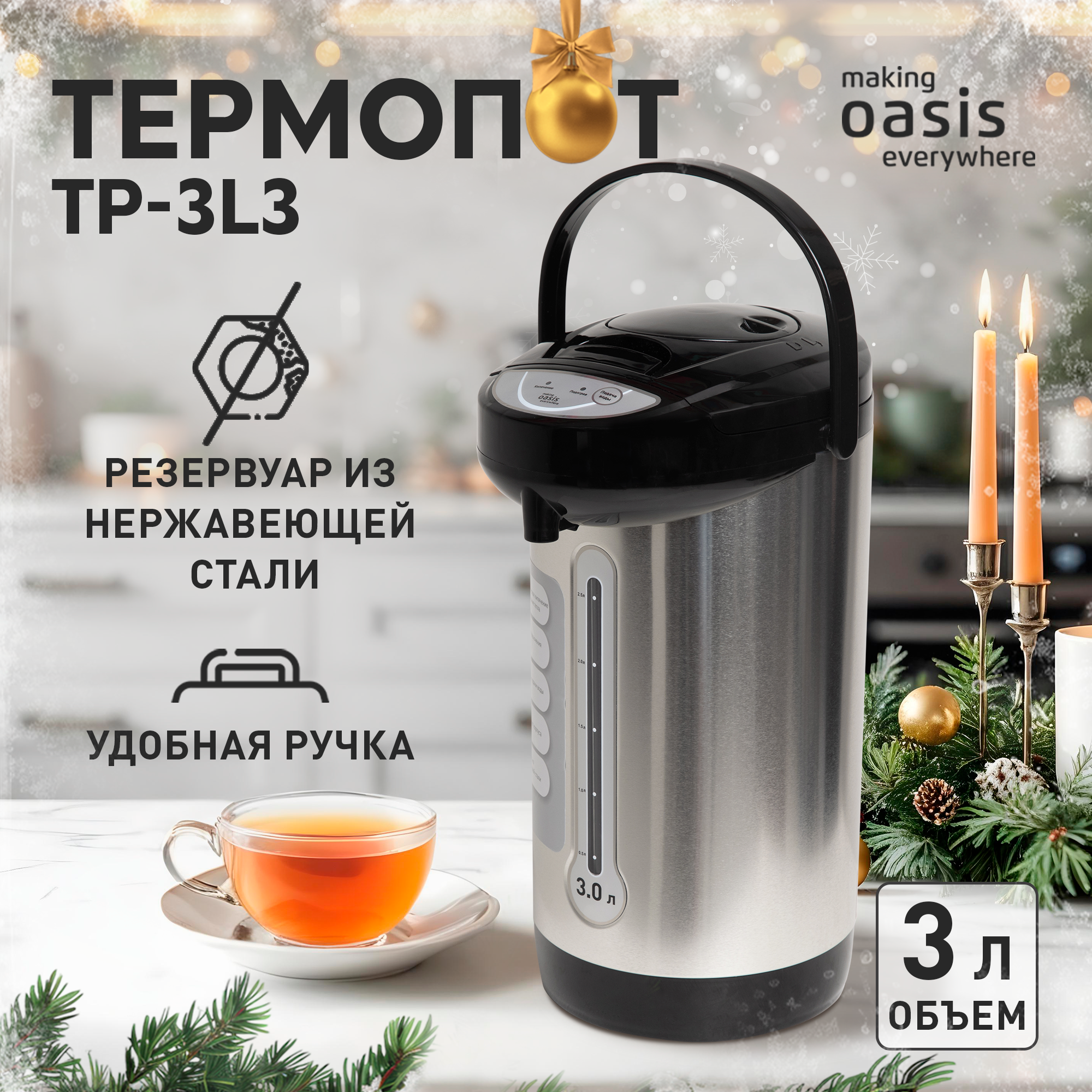 Термопот электрический электрочайник 3 л making Oasis everywhere TP-3L3, 750 Вт