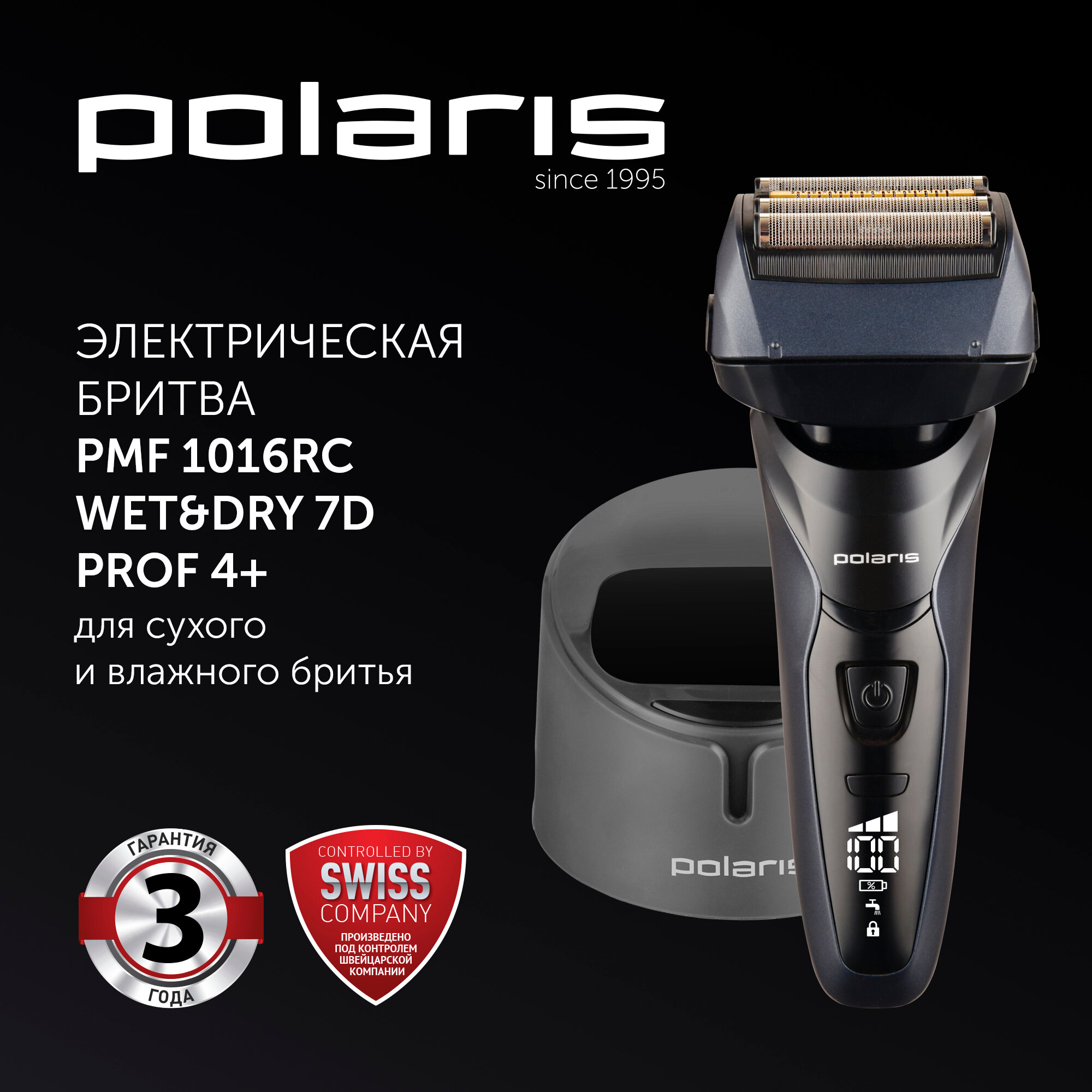 Бритва электрическая Polaris PMF 1016RC wet&dry 7D PROF 4+, черный информация: