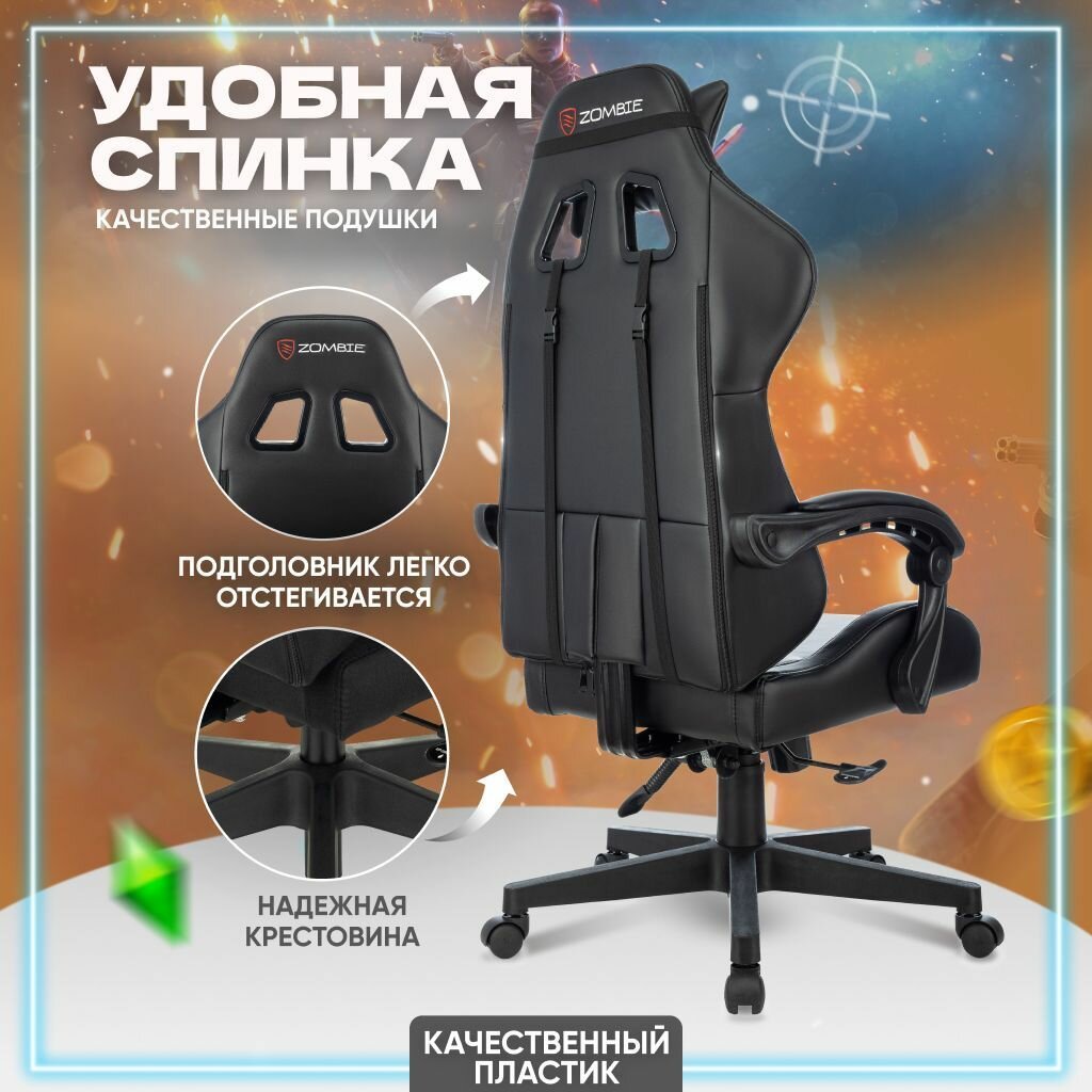 10 цен на Кресло компьютерное игровое офисное для геймеров Бюрократ с подголовником, текстиль, ZOMBIE GAME RGB