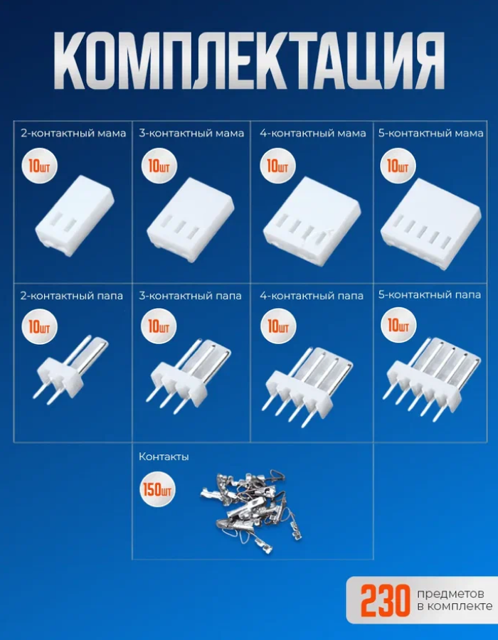 Набор разъемов HX2.54 2, 3, 4, 5 pin 230 предметов в кейсе информация: