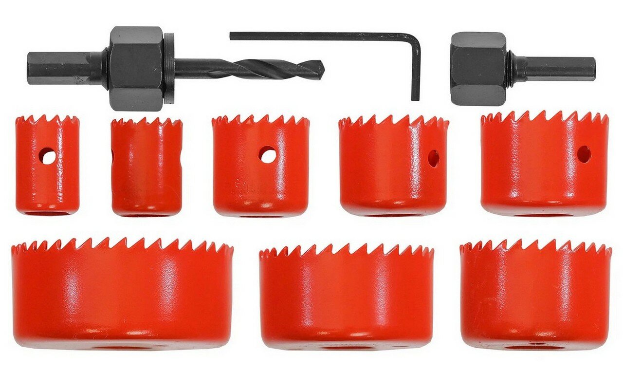 | Дополнительная информация | набор цельнометаллических коронок по дереву:кольцевая пила из углеродистой стали-8 шт.шестигранный ключ-1шт.оправки-2шт.зубья разведены и заточены. |
