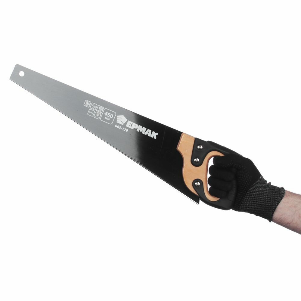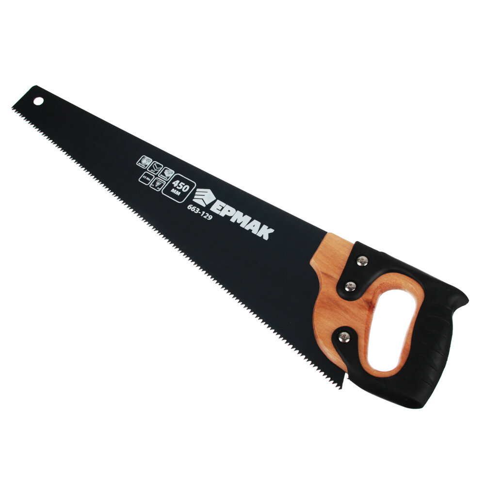 Ножовка по дереву ермак, 450мм, с деревянной обрезиненной ручкой, универсальный зуб размером 4 мм информация: