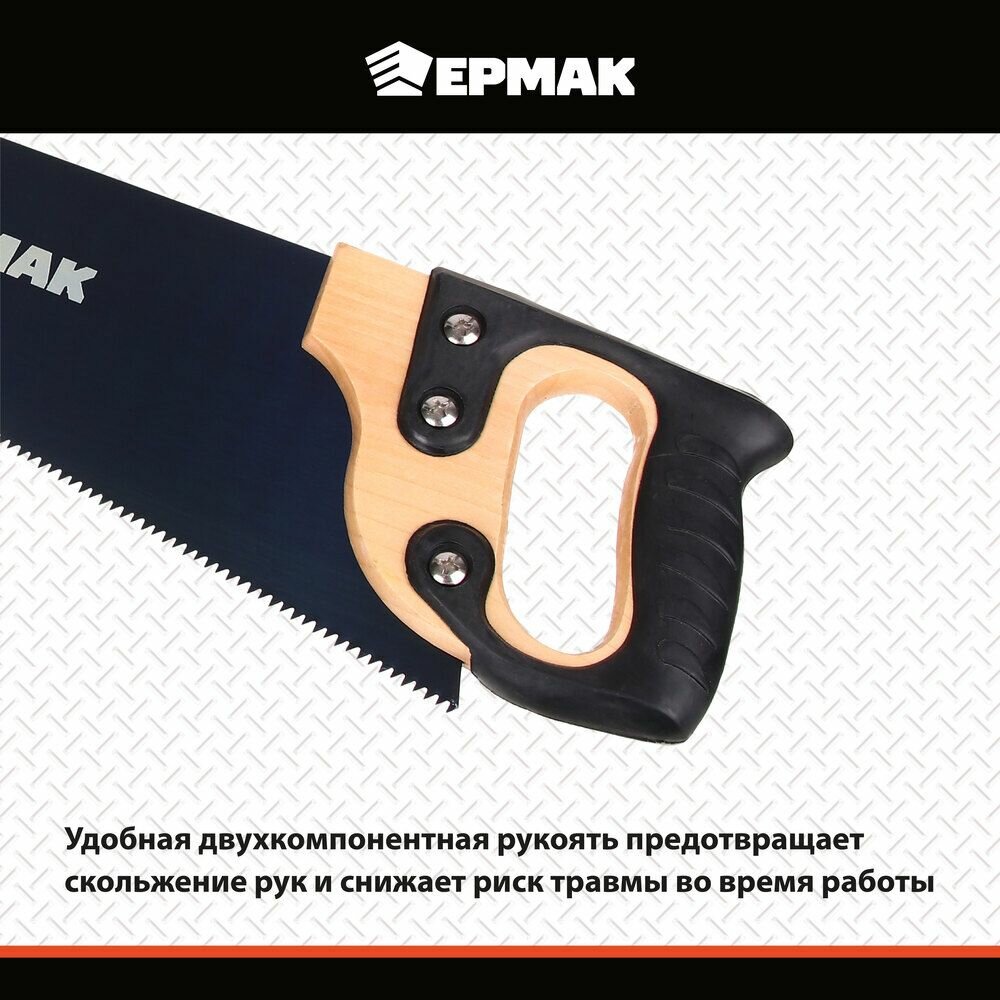 Ножовка по дереву ермак, 450мм, с деревянной обрезиненной ручкой, универсальный зуб размером 4 мм 497 ₽