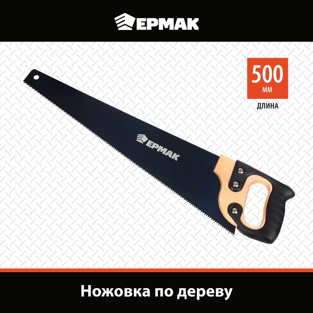Ножовка по дереву Ермак 500мм с деревянной обрезиненной ручкой, универсальный зуб, 4 мм