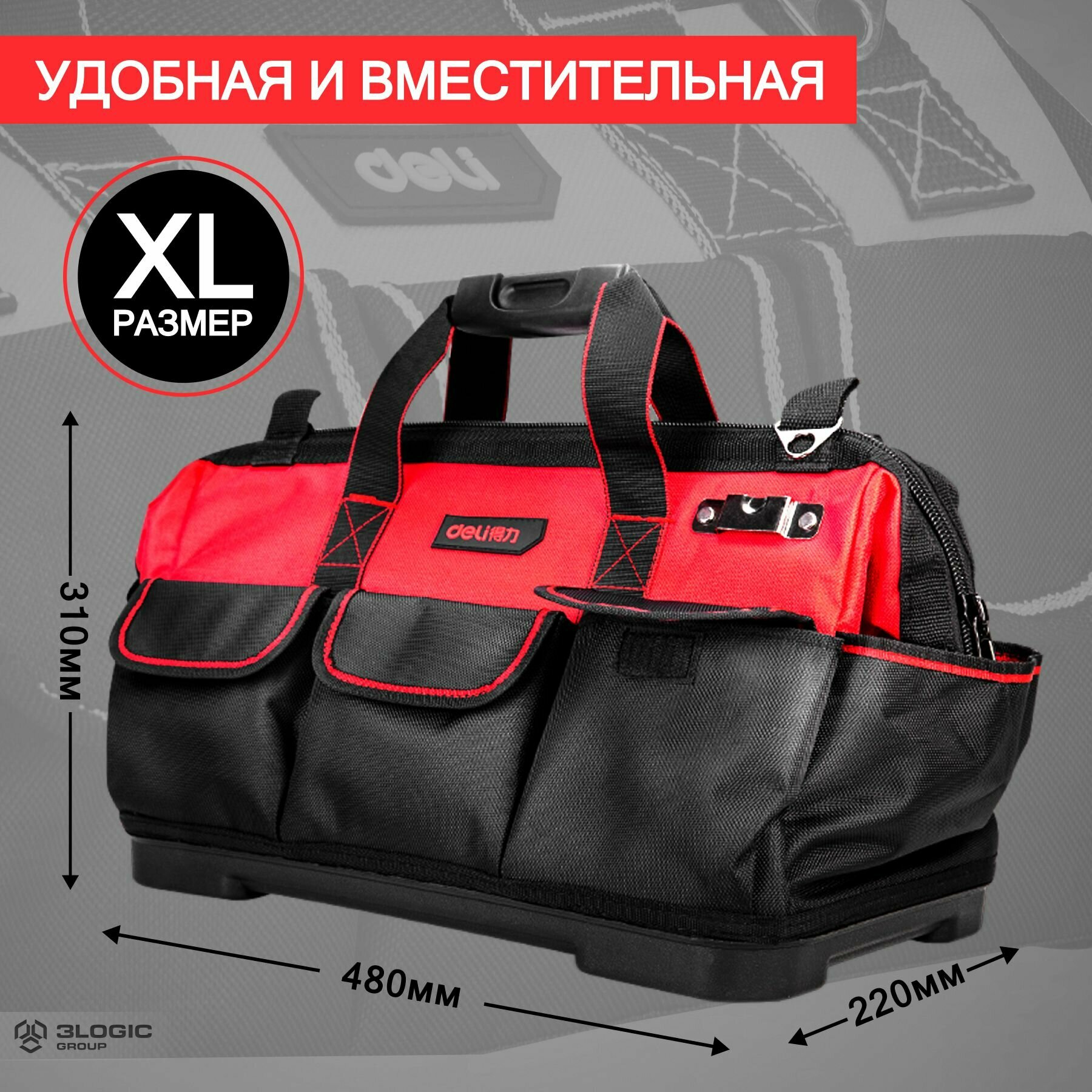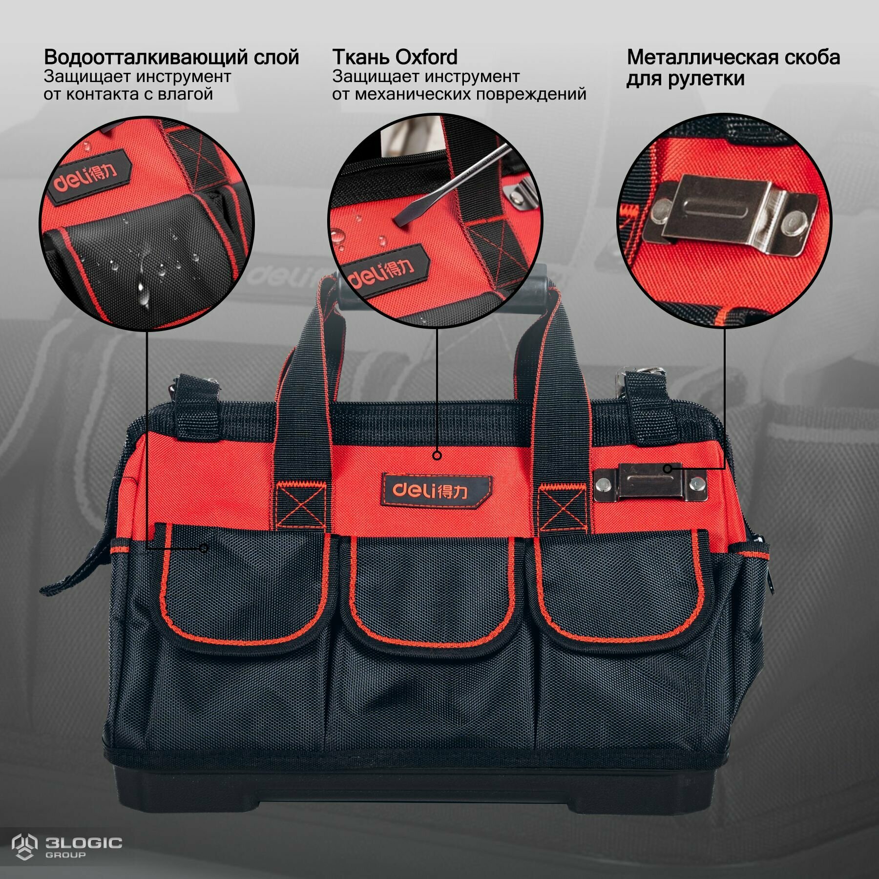 DELI Сумка для инструментов с жестким пластиковым дном DL430320 475x220x310мм (16 карманов, плечевой ремень, ткань оксфорд 1680d) 111108