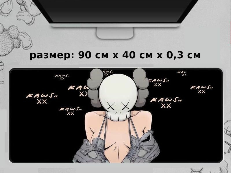 Коврик для мышки, компьютерный большой игровой, 90х40х0,3 см (Kaws 2 черный) 1 039 ₽