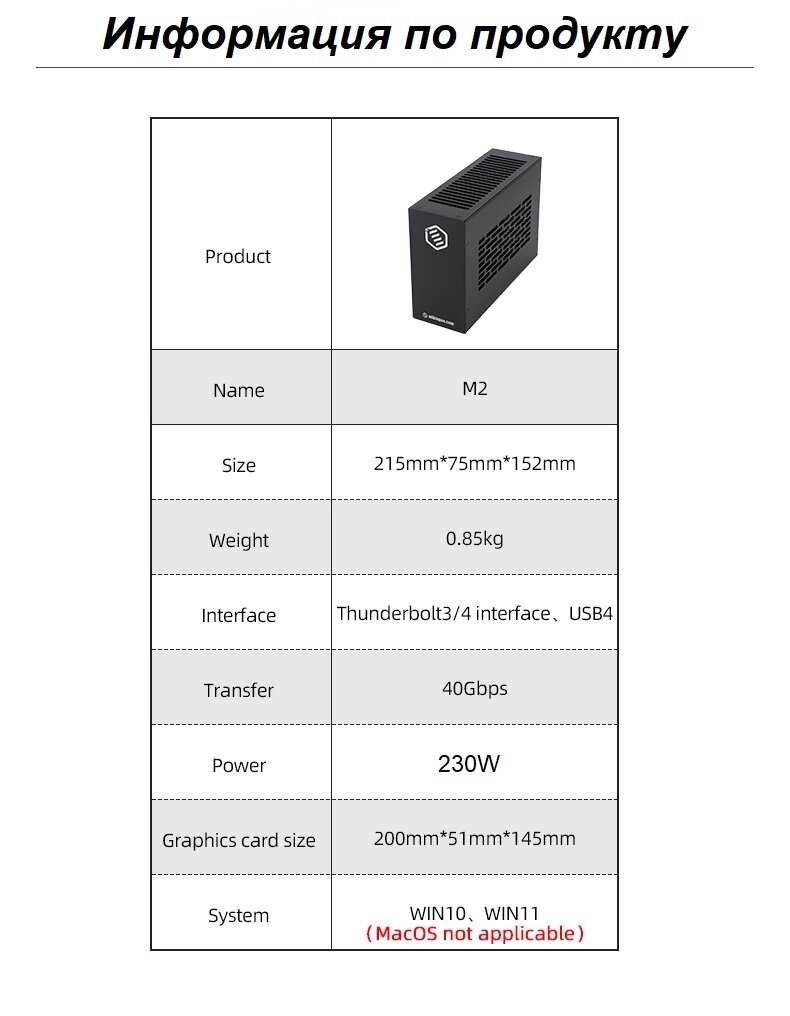 Внешний корпус для видеокарты Wikingoo M2-230W. EGPU. информация: