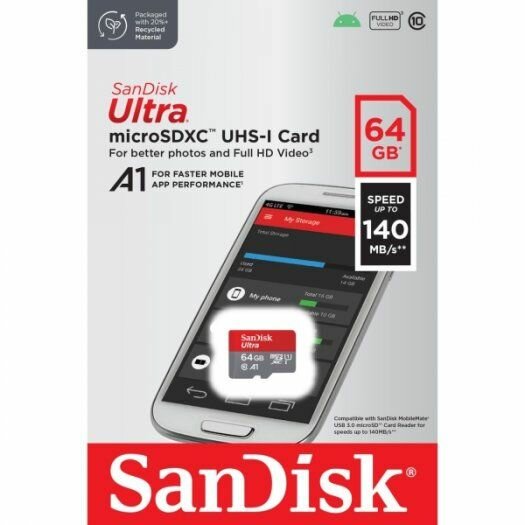 Карта памяти SanDisk microSDXC 64 ГБ Ultra Class 10, UHS-I, U1, A1 (140 Mb/s) 1 030 ₽