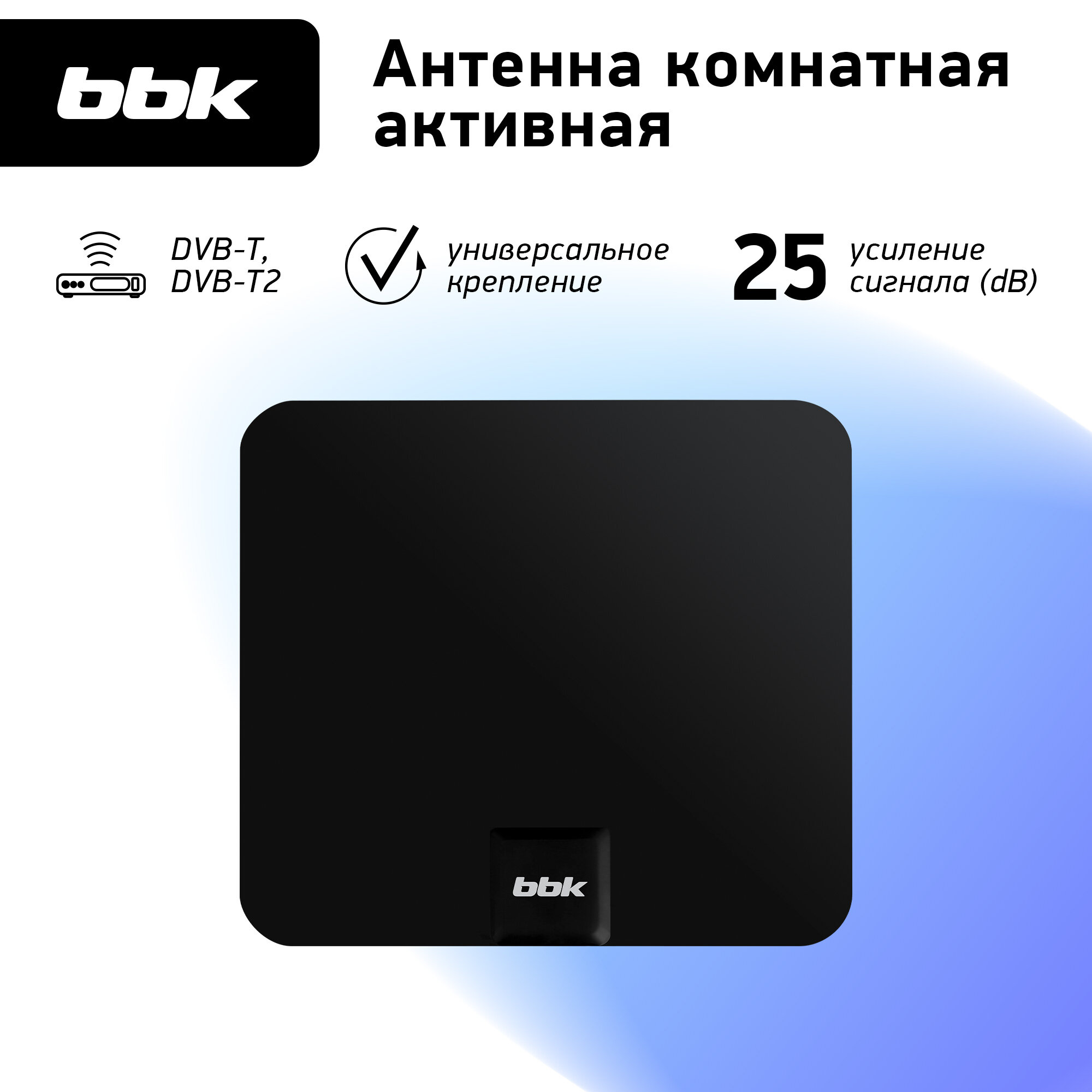 Антенна цифровая комнатная активная BBK DA19, черный, DVB-T2, коэффициент усиления 25 dB информация: