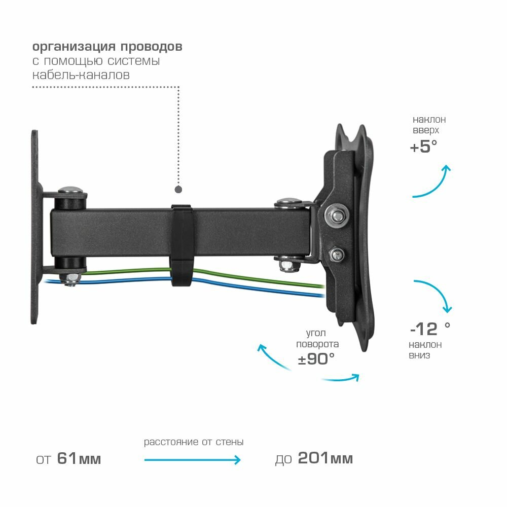 Кронштейн для телевизора Kromax CORBEL-2, 10-32", настенный, поворот и наклон, черный [90462] 1 290 ₽