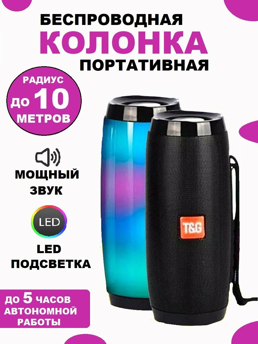 10 цен на Колонка Bluetooth TG-157 TG, с LED-подсветкой, FM-радио, черная