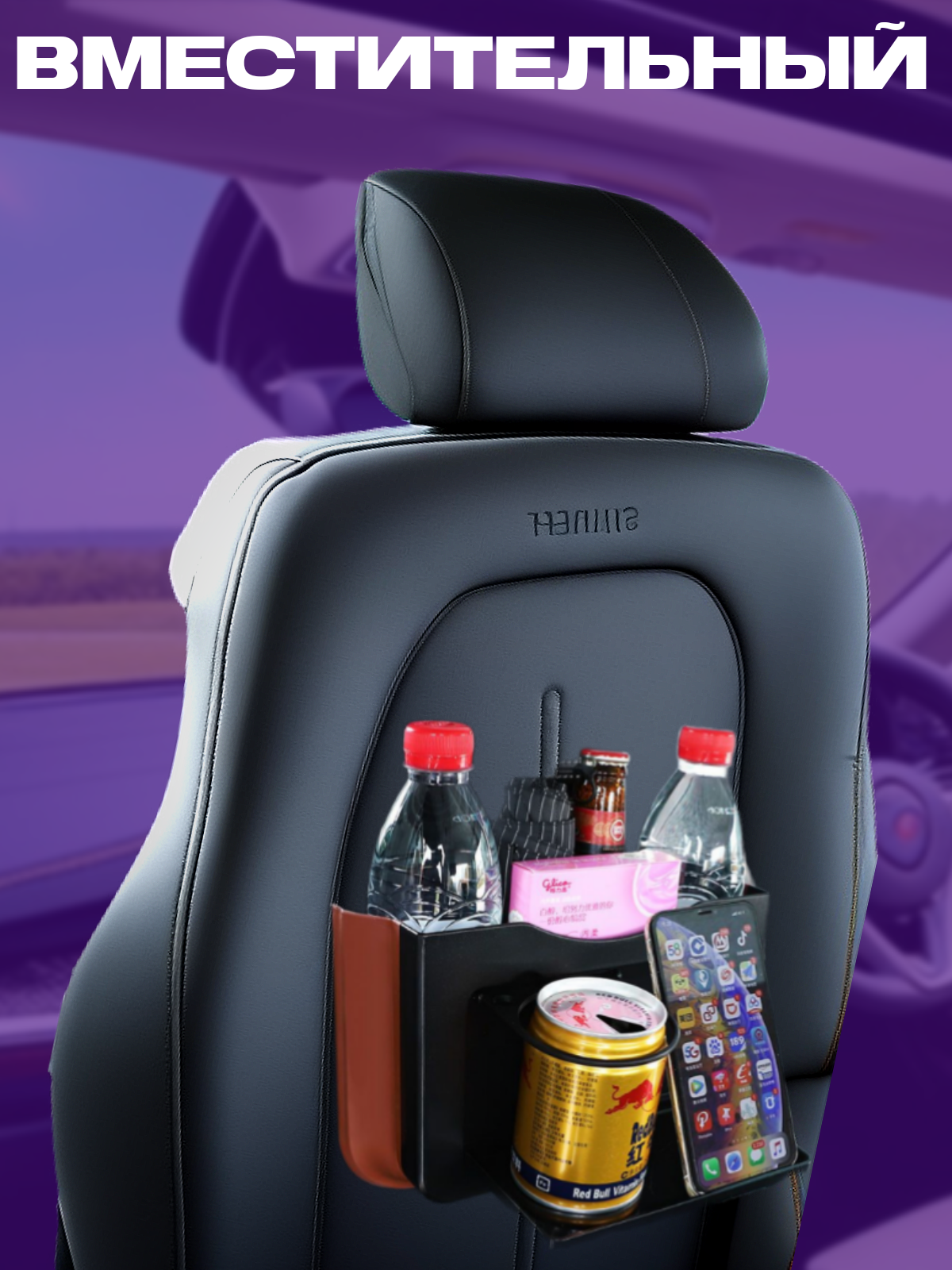 Органайзер на спинку сиденья автомобиля незапинайка Цвет Черный