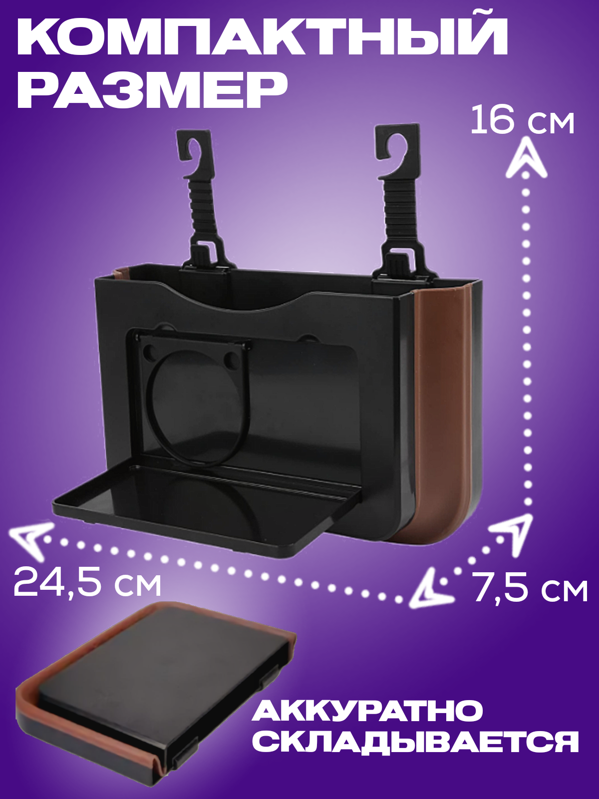 Отзывы на Органайзер для автомобиля, чёрный, с подстаканником, складной, пластик, 2л