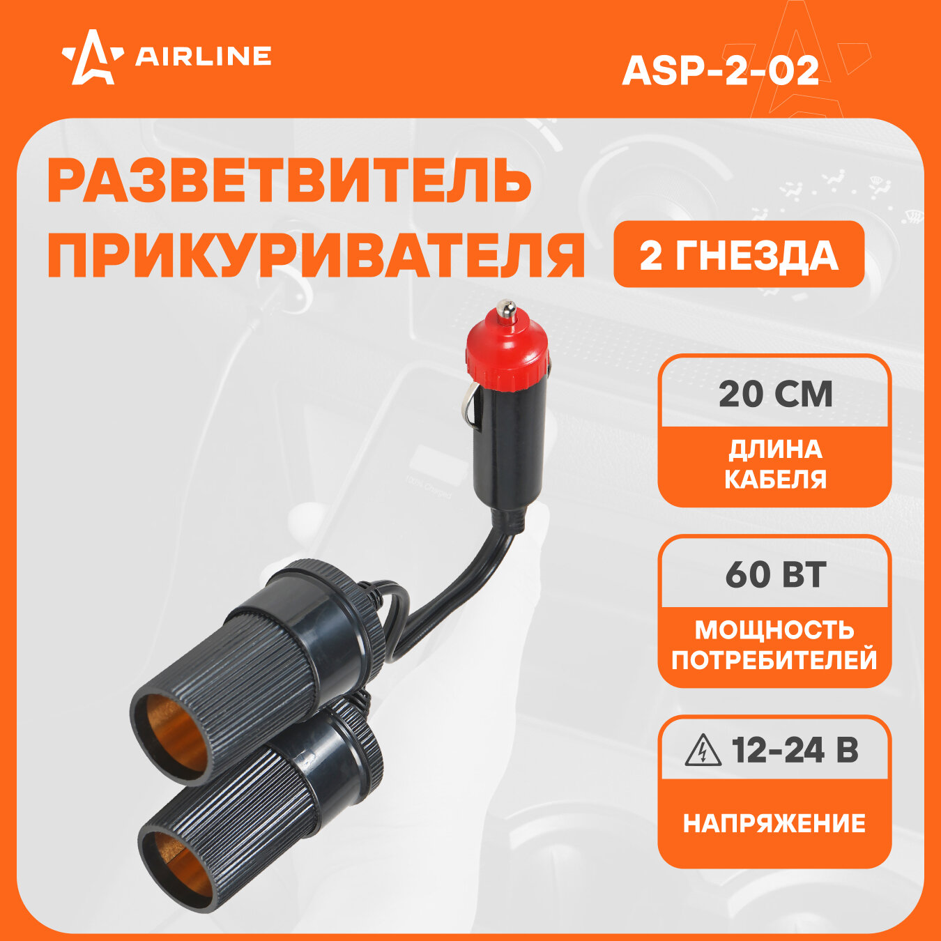 Прикуриватель-Разветвитель На 2 Гнезда Asp-2-02 AIRLINE арт. ASP-2-02