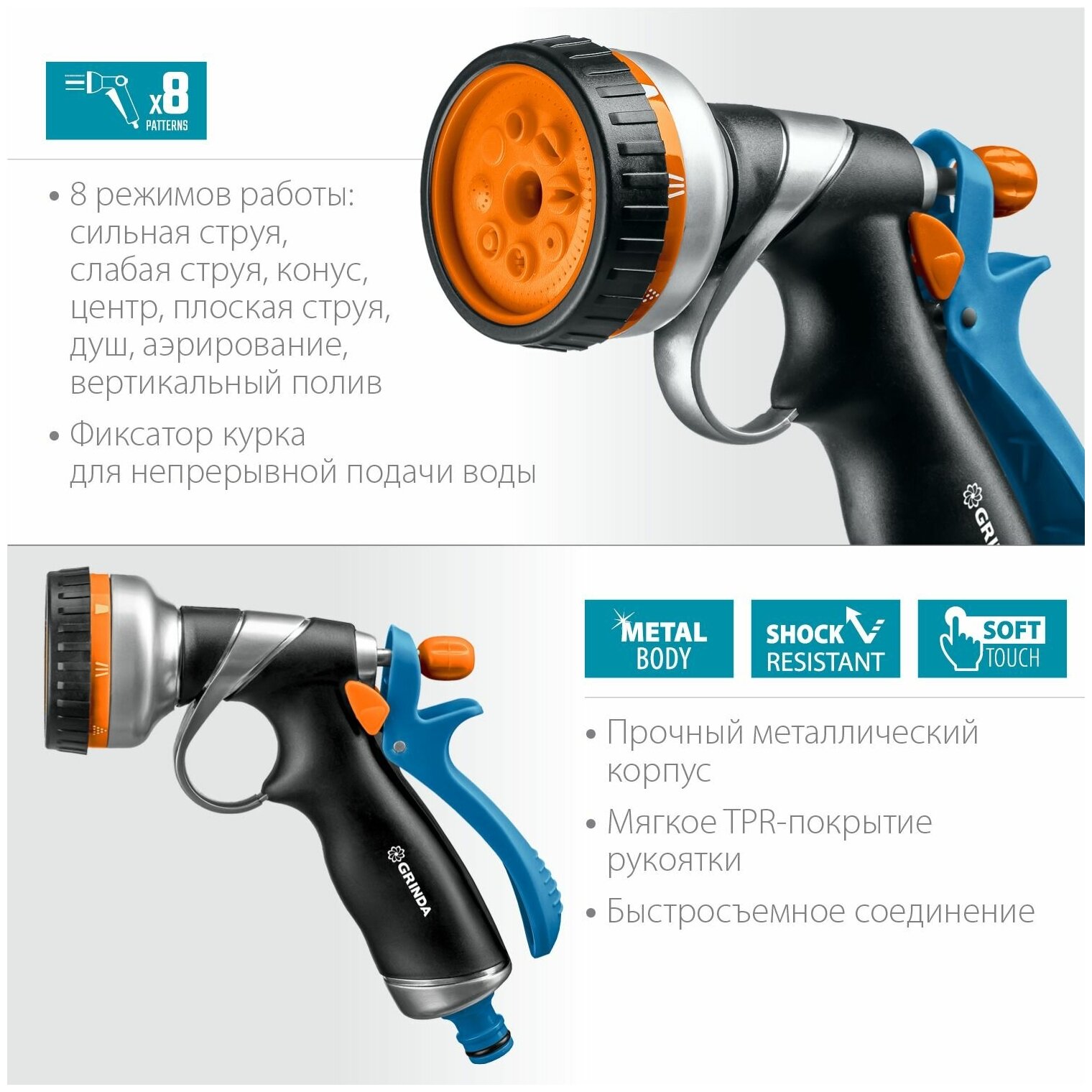 Металлический поливочный пистолет GRINDA PROLine RM-8 8 режимов, TPR покрытие 8-427143_z02 информация: