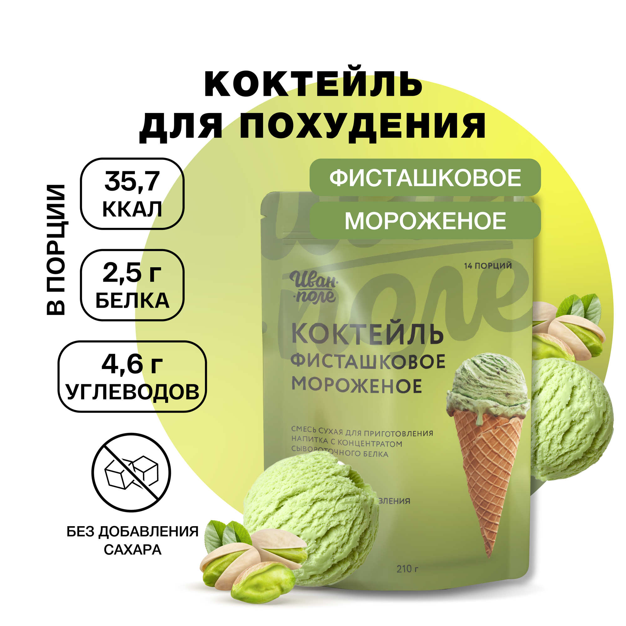 10 цен на Молочный коктейль Иван-поле Фисташковое мороженое, протеиновый для снижения веса, 210 г/14 порций